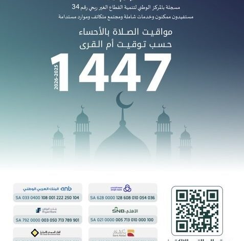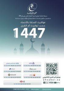بدأت الجمعية توزيع النسخ الورقية من تقويم مواقيت الأذان لعام 1447هـ عبر مقرها الرئيسي، وذلك ضمن خدماتها السنوية لخدمة أهالي المحافظة.