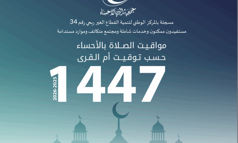 مواقيت الأذان بالأحساء 1447 هـ